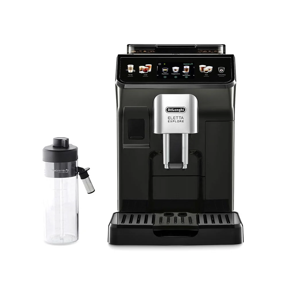 Behind its sleek silver painted front, the New De’Longhi Eletta Explore automatic coffee maker offers 50+ hot, cold and Cold Brew drinks for you to discover. Enjoy automatic hot milk foam thanks to LatteCrema Hot Technology*, and refreshing cold and Cold Brew coffee drinks with LatteCrema Cool* and Cold Extraction Technologies, at home or on the go with the handy To-Go function.